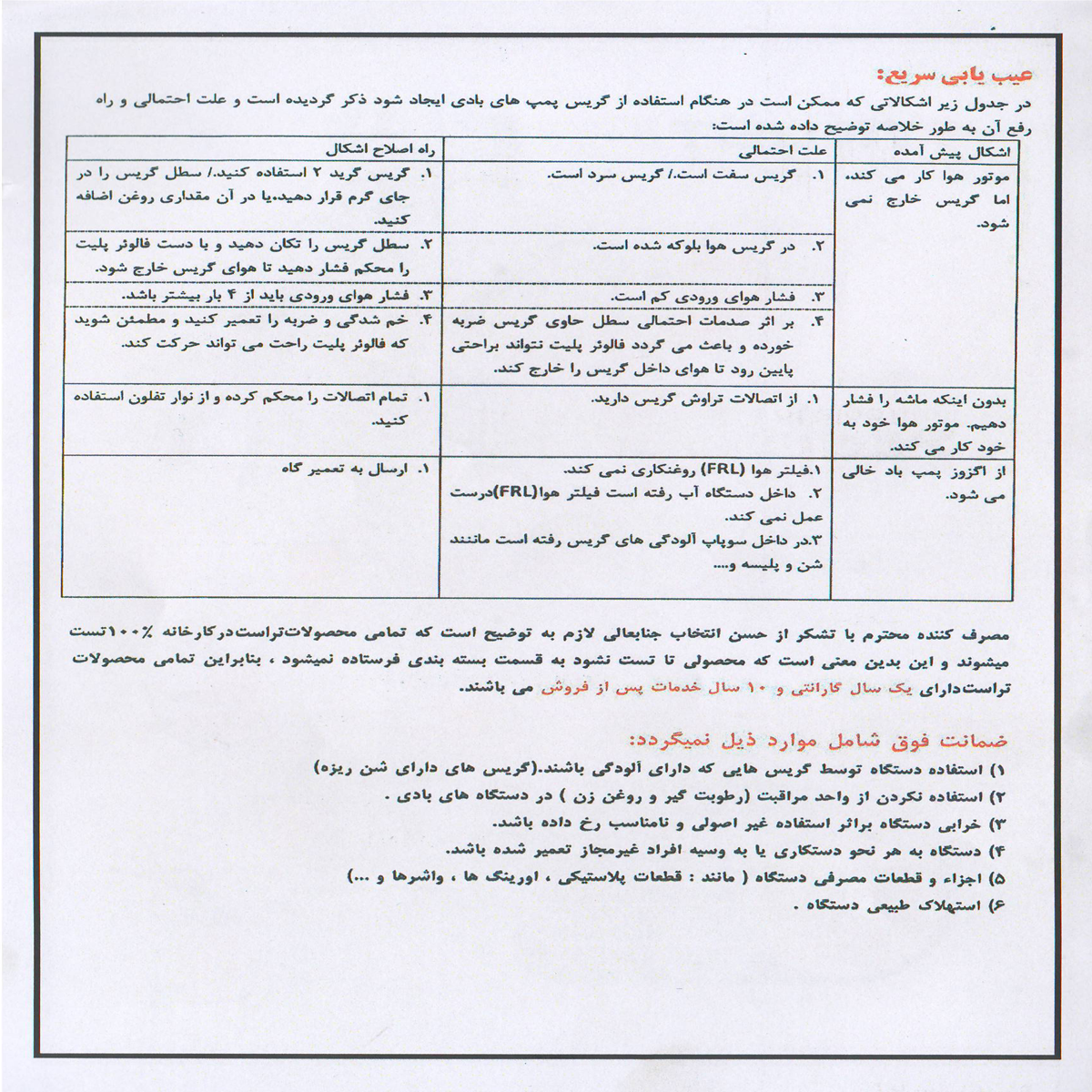 توان تخلیه گریس : 1/10 کیلوگرم در دقیقه